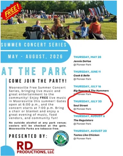 Soul Street is Thrilled to Perform at the Mooresville Summer Concert Series